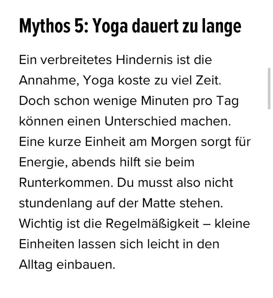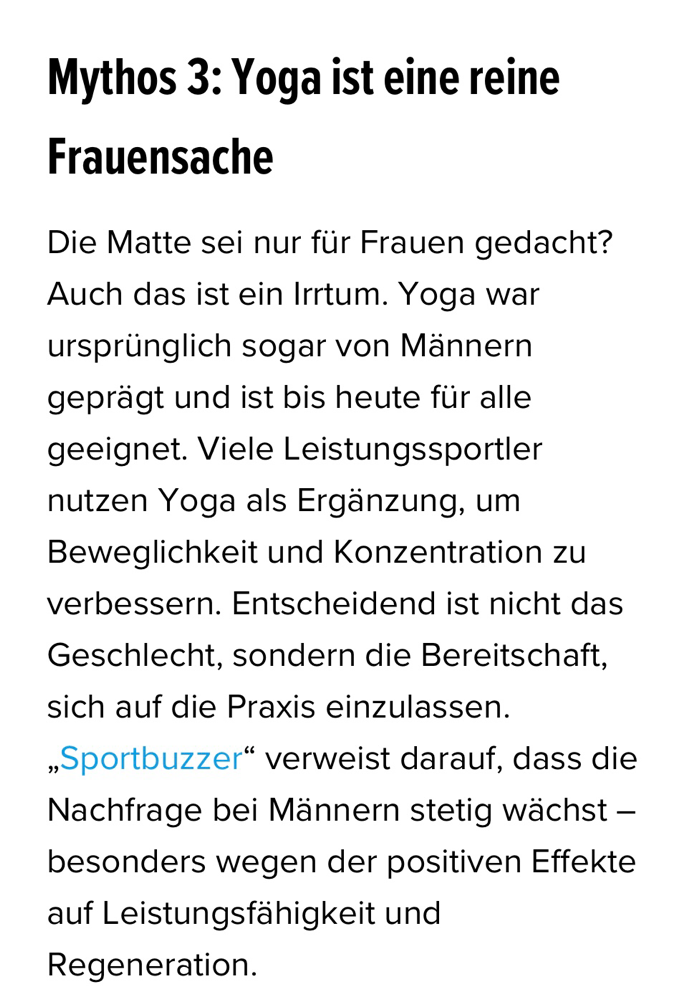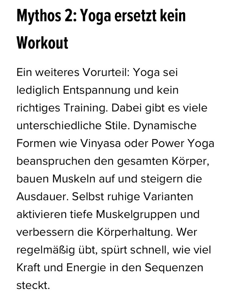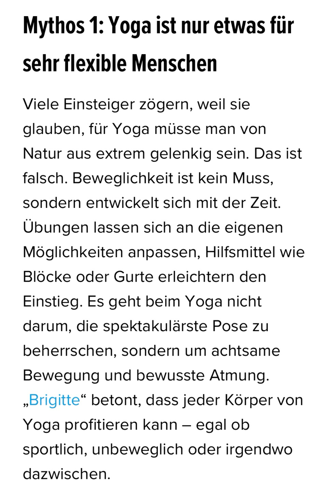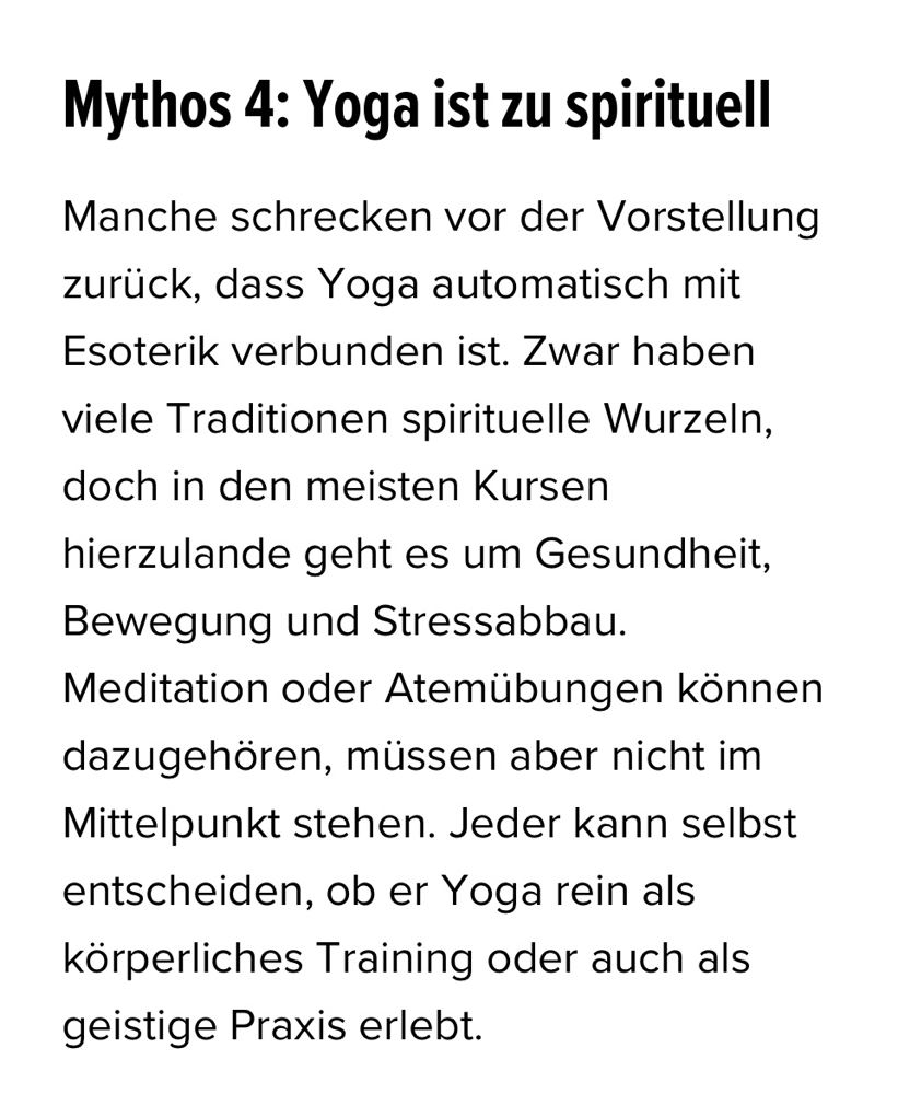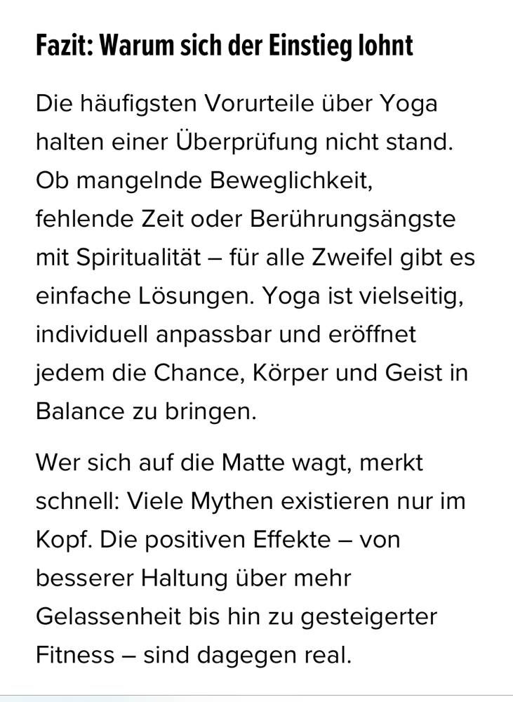 "Yoga bedeutet nicht, akrobatische Posen zu beherrschen, sondern Wege zu finden, wie Körper und Geist wieder in Balance kommen. Studien belegen: Yoga reduziert